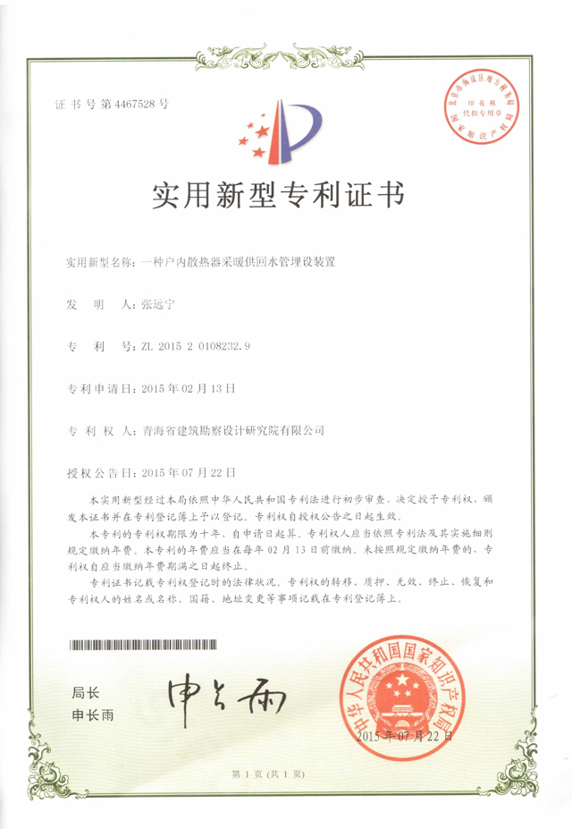 2015年度,我公司依靠行業(yè)科技人才的優(yōu)勢(shì),加大研發(fā)力度,專利技術(shù)取得了顯著成效。按照國(guó)家有關(guān)專利技術(shù)申報(bào)工作要求,共申報(bào)專利技術(shù)9項(xiàng),經(jīng)國(guó)家知識(shí)產(chǎn)權(quán)局核批,其中8項(xiàng)獲得“實(shí)用新型專利證書”,這8項(xiàng)專利技術(shù)分別為: