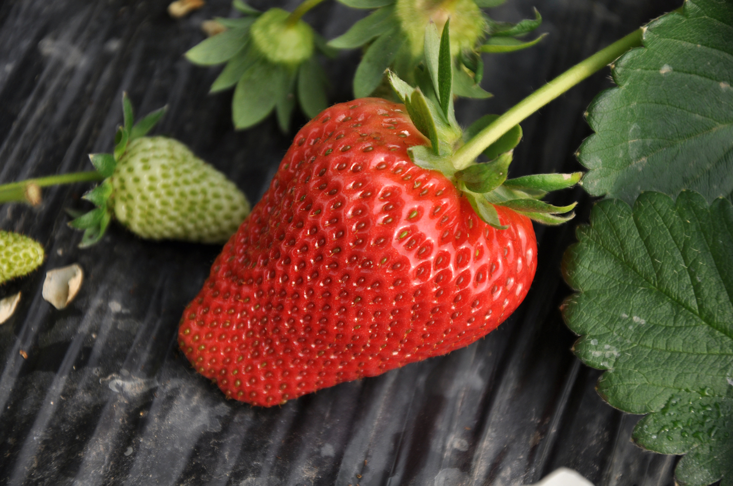 一筐筐鮮紅紅、無污染,還略帶露水的草莓終于被勤勞的雙手從溫棚內“解放”了出來,過秤,結錢。我們帶著勝利的果實,又在另幾個溫棚收獲了蘑菇、菜瓜等青菜。